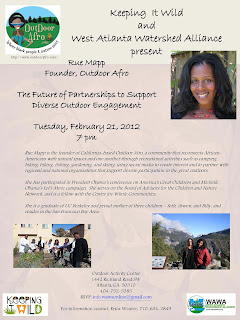 Join WAWA and Keeping It Wild, Inc. for an evening with Rue Mapp, Founder of the California-based organization, Outdoor Afro. Rue will speak on "The Future of Partnerships to Support Diverse Outdoor Engagement". The event will take place on Tuesday, February 21, 2012 @ 7:00 pm at the Outdoor Activity Center (OAC).